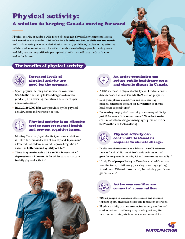 ParticipACTION continues to advocate for sustained investment and effective policies and interventions on a national scale.