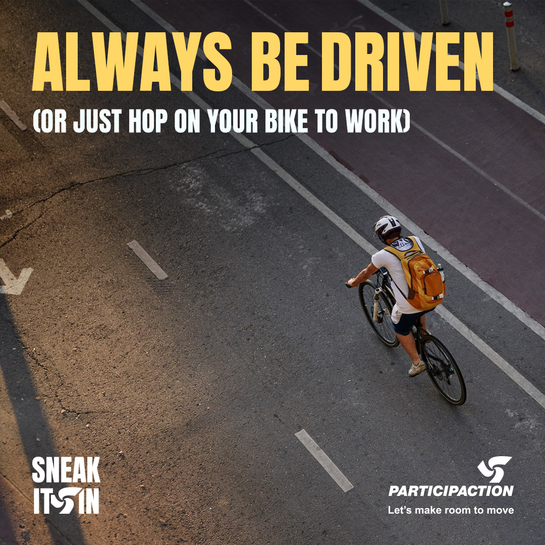 If possible, walk, wheel, cycle, rollerblade, skateboard or ride a scooter to and from work, school, appointments, and/or shops, even if it’s just for part of the way. Taking public transit? Get off a stop or two earlier or take the stairs instead of escalators or elevators at stations if you’re able. In fact, just walking to and from public transit can help you get eight to 33 more minutes of physical activity each day.