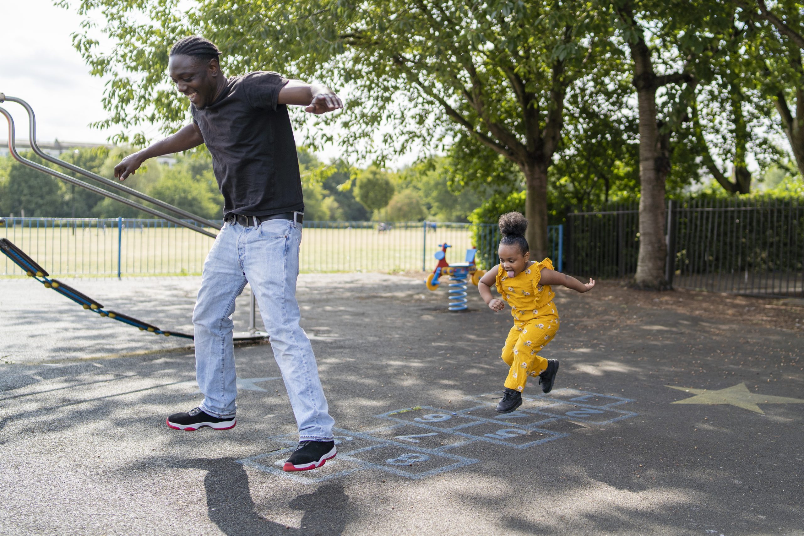 Play interactive games with your family that require physical movement. Playing tag, hopscotch or jumping rope with your kids, or playing fetch with your pet could be active for all of you!