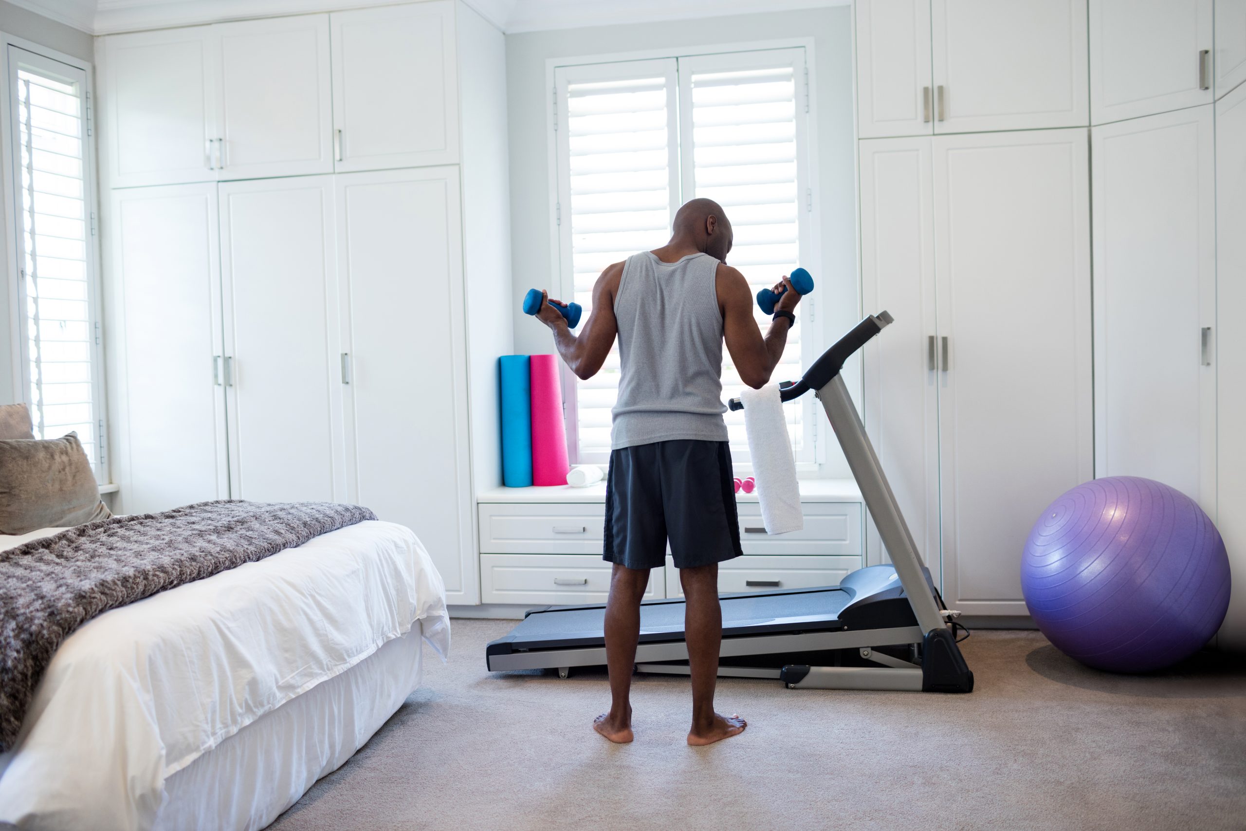Keep exercise gear like dumbbells, resistance bands, yoga mats, stability balls and/or running shoes in plain sight and easy to access. Move furniture and other obstacles out of the way so you have enough space to safely get active. If these options aren’t possible, try activities like bodyweight exercises that don’t require equipment or much space.