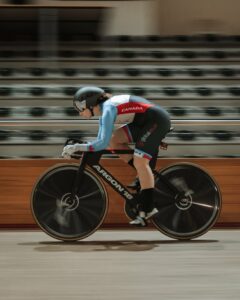 Since she joined Team Canada for track cycling, Sarah has competed at two world championships (Berlin, Germany, in 2020 and Roubaix, France, in 2021), won four Nation Cup medals (three bronze, one silver), was named as an alternate for the 2021 Olympics in Tokyo and competed in the 2022 Commonwealth Games in Birmingham, U.K. Sarah is now working her way to competing in the 2024 Olympics in Paris.