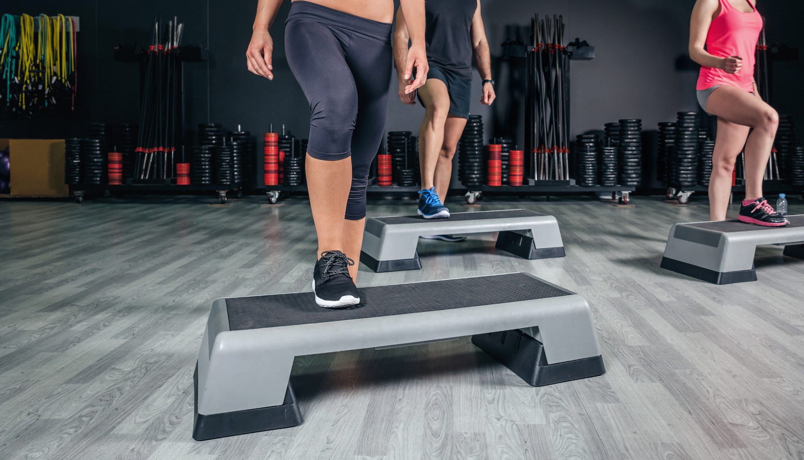 Restez en position debout devant une marche, une boîte ou un banc solide qui ne dépasse pas la hauteur de votre genou. Gardez les pieds à la largeur des hanches et les bras détendus sur le côté. Placez le pied droit fermement sur la marche, la boîte ou le banc, et appuyez sur le talon pour soulever votre corps. Amenez le pied gauche à côté du droit de manière à ce que vous soyez entièrement monté·e sur la marche, la boîte ou le banc. Redescendez avec le pied gauche d’abord, suivi du droit, et retournez à la position de départ. Vous pouvez faire toutes les répétitions d’un côté avant de changer, ou alterner de jambe à chaque montée.