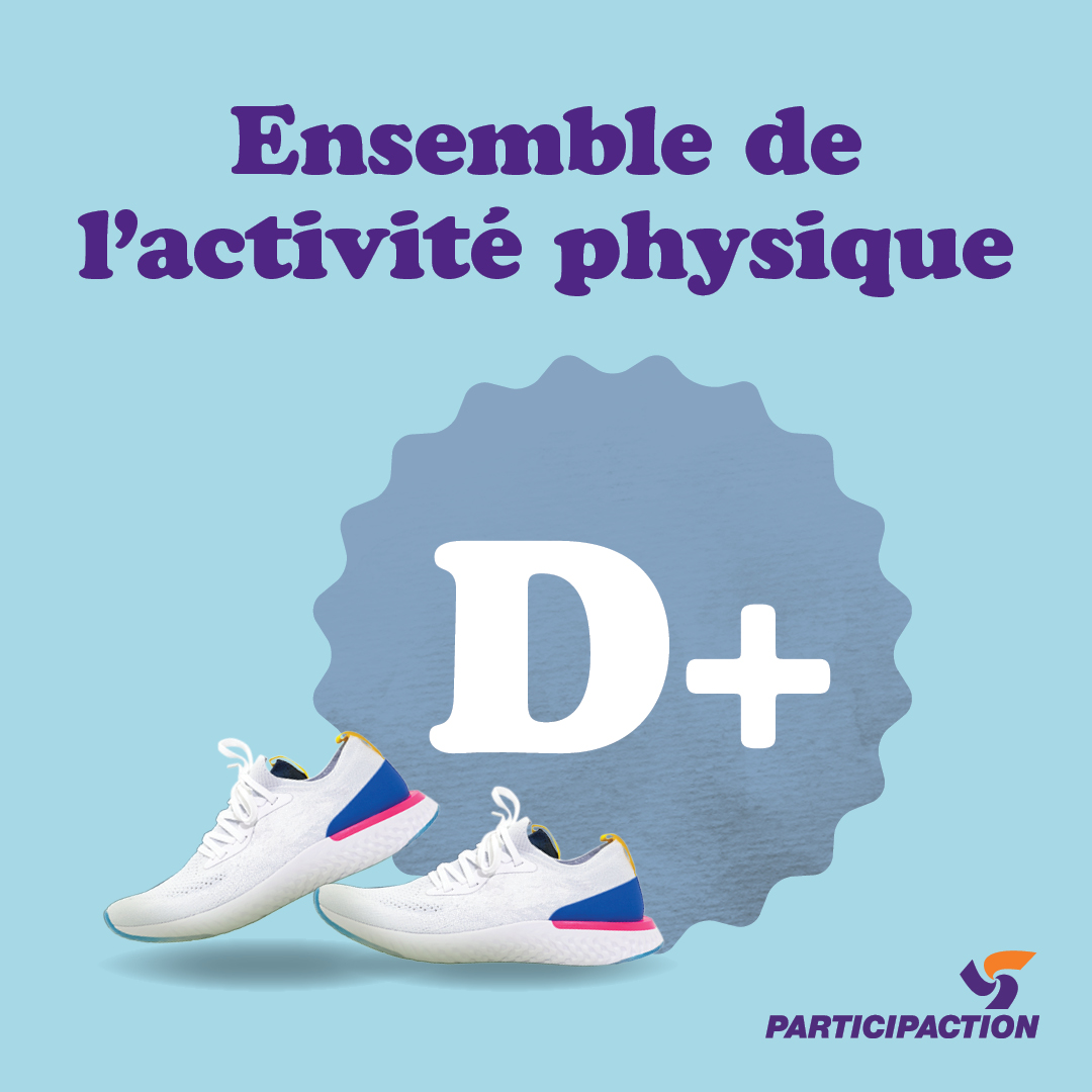 Le Bulletin 2024 révèle des notes plus élevées dans certaines catégories comparativement au Bulletin de 2022. Par exemple, la note pour l’ensemble de l’activité physique est passée à « D+ », alors qu’au plus fort de la pandémie de COVID-19, elle était « D ». Même si la note pour de l’ensemble de l’activité physique s’est améliorée, « D+ » demeure toute de même une note indésirable. Alors que nous continuons à nous remettre lentement des effets de la pandémie sur l’activité physique, les impacts des changements climatiques s’ajoutent aux défis liés à la pandémie pour les enfants.